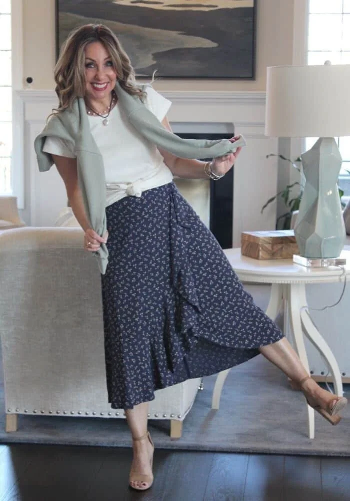 And then I love being able to pair the skirt with the coordinating top and make it look like a dress. These are the ALLY heels – truly comfortable! USE CODE HALLIE40 TO SAVE $40