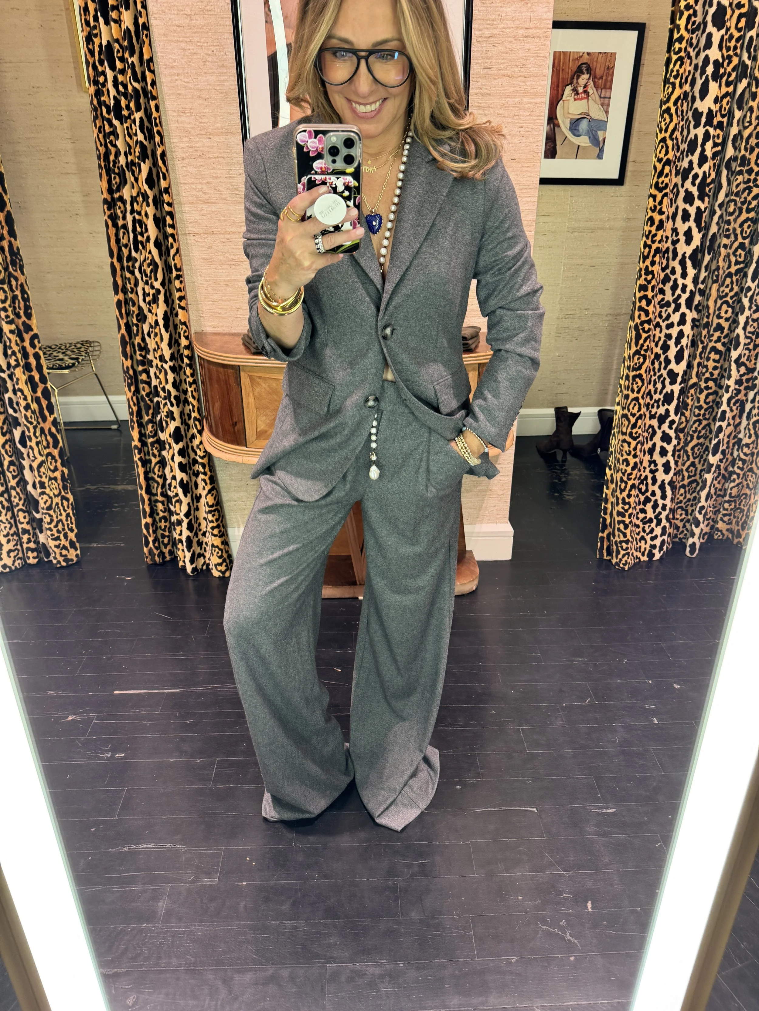 The next day, my shopping partner-in-crime was Tracy from Eleanor and Hobbs in Rocky River. We visited the Nili Lotan showroom to buy for spring. (Sneak peek: barn jackets and brown hues will still be going strong for spring 2026!) My secret weapon was my most beloved pair of glove shoes, truly! I can walk for miles in them.