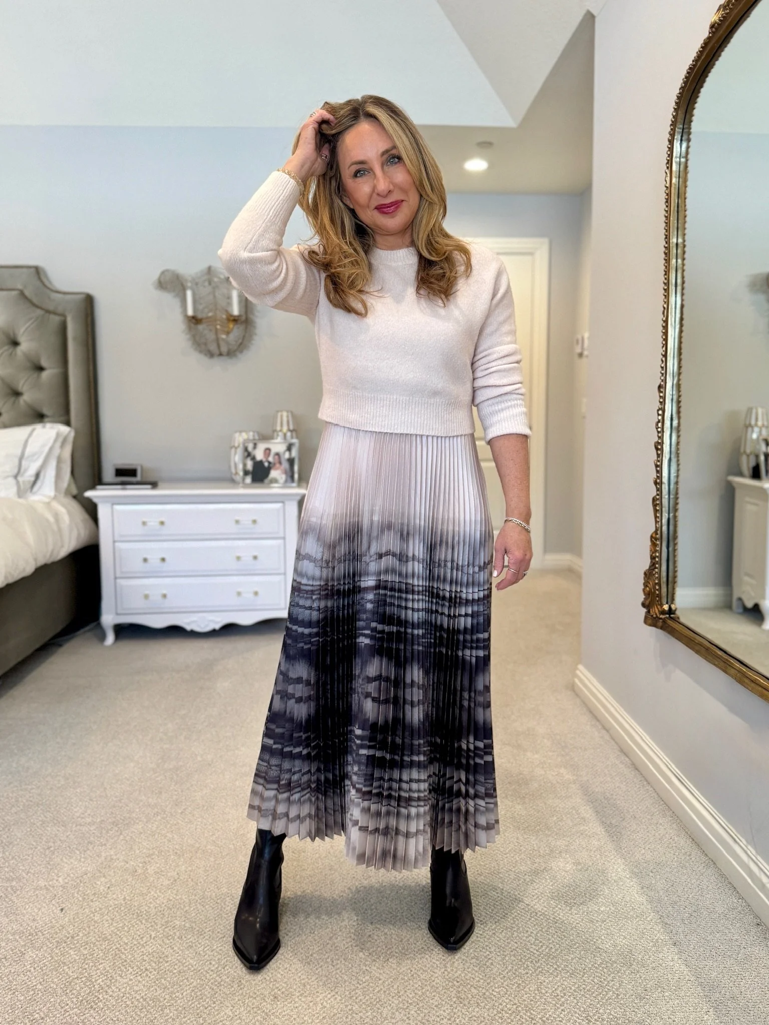 The tall boot has made a full comeback, and I couldn’t be happier. With a slight heel and a shaft that hits at or just below the knee, they instantly elevate skirts, dresses, and even slim trousers. You can go for a tight-fitting pair that hugs your leg (great for dresses/skirts) or a looser style that feels more relaxed (perfect for tucking jeans/pants into). Take note, these are not your riding boot of years past. The modern tall boot has less hardware and a sleeker toe box (not as round) so it feels more streamlined and less chunky/clunky.